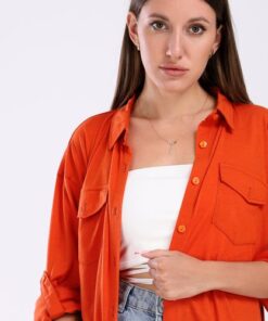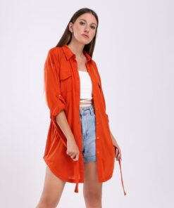 Kady Full Buttoned Cotton Shirt With Belt – Orange