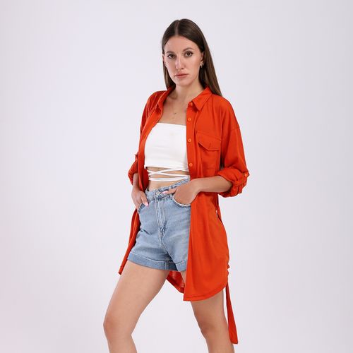 Kady Full Buttoned Cotton Shirt With Belt – Orange